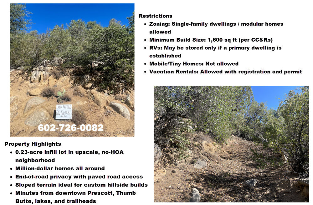 *REDUCED PRICE! Prescott AZ Lot Surrounded by Luxury Homes 0.23 Acres with Slope Views and No HOA