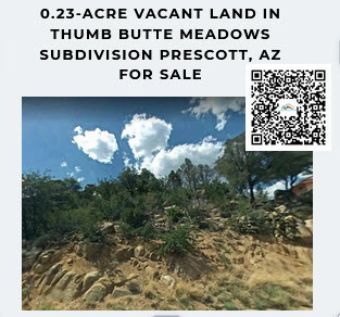 NOW ONLY $68,497. Discounted Cash Price! (was $76,999) Welcome to 2093 Meadowbrook Rd in the Thumb Butte Meadows neighborhood of Prescott, AZ — where the views are stunning, the homes are beautiful, and the neighbors have excellent taste (and equity). It backs up to 22 acres of natural city land, making it the highest elevation (5,744 ft) lot with the least traffic and INCREDIBLE mountain views and twinkling city lights – with the LOWEST price in Thumb Butte Meadows!